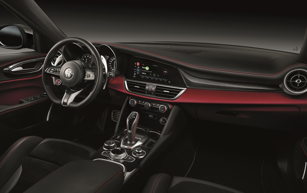 Το ολοκαίνουργιο σύστημα πολυμέσων με την οθόνη αφής των 8,8 ιντσών έχει νέα γραφικά, αλλά και λειτουργίες που σχεδιάστηκαν αποκλειστικά για τις εκδόσεις Quatrofoglio, έτσι ώστε ο οδηγός να βλέπει σε πραγματικό χρόνο την κατάσταση του αυτοκινήτου, τη θερμοκρασία των κρίσιμων μηχανικών μερών, την απόδοση του κινητήρα, την πίεση του Turbo, αλλά στοιχεία τηλεμετρίας που αφορούν στην επιτάχυνση και συνολικά τις επιδόσεις του μοντέλου.