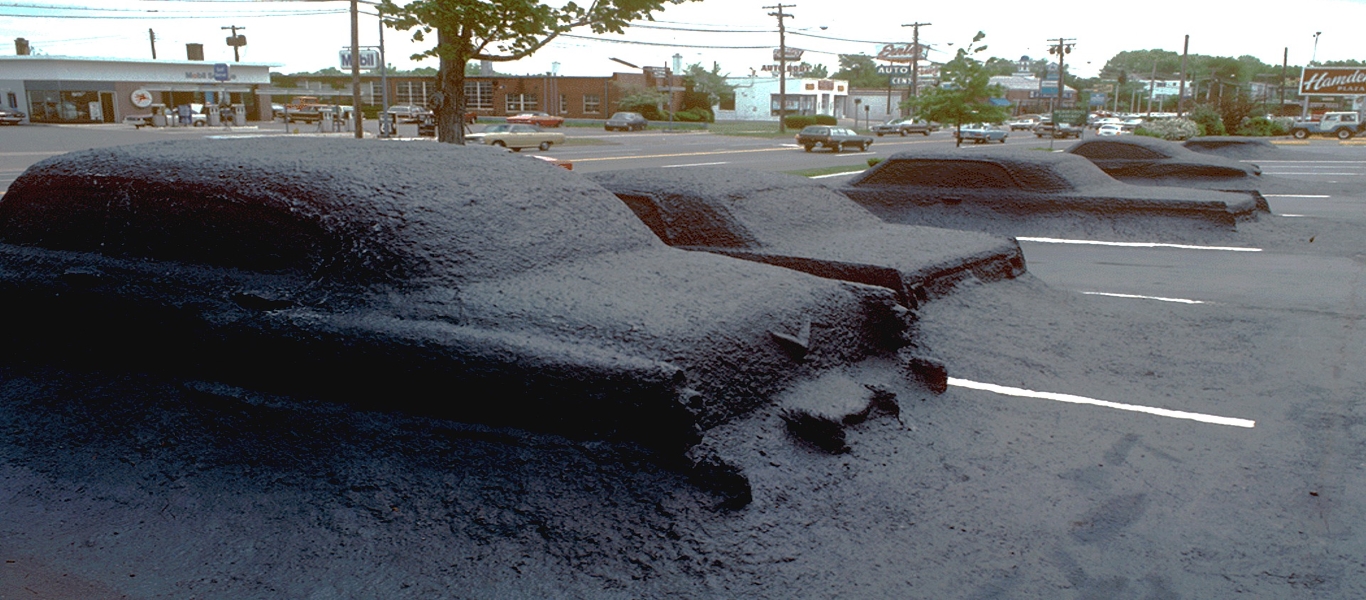 Οχήματα διαφόρων ειδών θάφτηκαν κάτω από την άσφαλτο σε διαφορετικά ύψη, έτσι ώστε να δίνουν την αίσθηση πως αναδύονται από αυτήν. Οι πελάτες του εμπορικού κέντρου πάρκαραν καθημερινά δίπλα από αυτά, καθώς είχαν τοποθετηθεί σε μια γωνία του ανοιχτού πάρκινγκ. Ανάμεσα στα αυτοκίνητα που θυσιάστηκαν για την τέχνη διακρίνουμε τα Plymouth Suburban station wagon (1969), Potiac Le Mans Convertible (1968), Chrysler Windstor (1952), Chevrolet Impala (1964), Volkswagen Karmann Ghia (1961) κ.α.