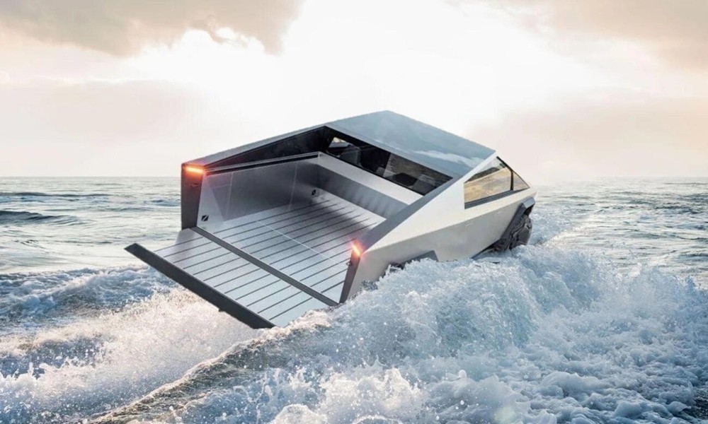 Ο Elon Musk έγραψε ένα σχόλιό σε μια ψηφιακή απεικόνιση του Slav Popovski που δείχνει το Cybertruck να επιπλέει με έναν άνθρωπο να κάθεται στην καρότσα του και να ψαρεύει αναφέροντας πως κάτι τέτοιο θα μπορούσε να καταστεί δυνατό.