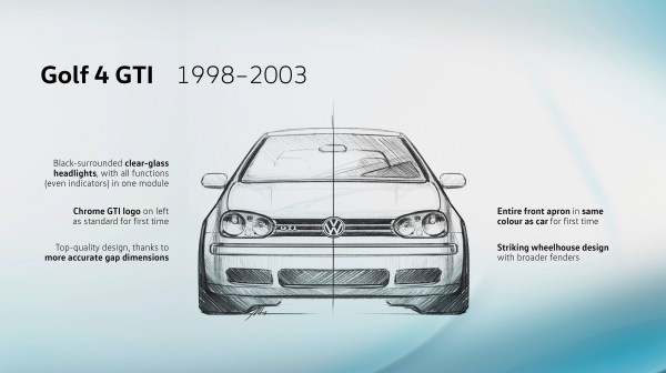 Τέσσερα στη σειρά: «Το Golf 4 GTI που παρουσιάστηκε το 1998 έχει μια πιο συγκρατημένη εμφάνιση και είναι το πρώτο και μοναδικό GTI που δεν έχει την κόκκινη λωρίδα στη μάσκα. Παρόλα αυτά θεωρείται μέχρι σήμερα η αφετηρία μιας νέας εποχής, αυτής μιας πιο ξεκάθαρης σχεδίασης αυτοκινήτων. Επίσης, θέτει νέα σημεία αναφοράς σε ότι αφορά την εξατομίκευση, την ποιότητα και την ταχύτητα», λέει ο Pavone. Με τον πιο μεγάλο κινητήρα του ήταν ιδιαίτερα γρήγορο: οι 180 ίπποι του εξασφάλιζαν τελική ταχύτητα 228 χλμ./ώρα. Από τη σκοπιά του σχεδιαστή, η επετειακή έκδοση των 25 ετών ήταν ιδιαίτερα εντυπωσιακή. «Χάρη σε αυτό κόλλησα το …μικρόβιο GTI», εξηγεί ο Pavone, ο οποίος γεννήθηκε στη Βραζιλία. «Οι εξαιρετικοί διάφανοι προβολείς και τα φαρδιά μαρσπιέ ήταν ιδιαίτερα ξεχωριστά»!