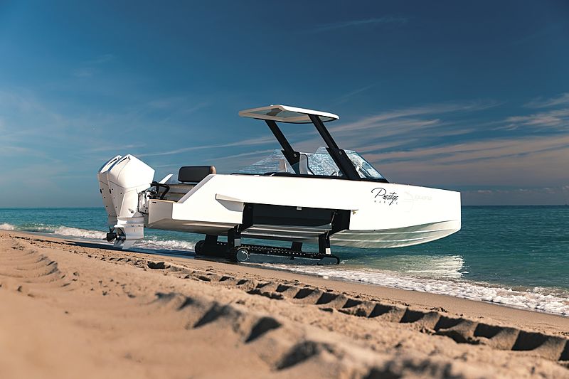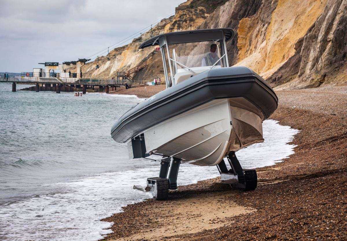 Η γαλλική εταιρεία ειδικεύεται στην κατασκευή σκαφών που δεν χρειάζονται καν θέση σε κάποια μαρίνα. Κι αυτό γιατί, όπως φαίνεται και στις φωτογραφίες που ακολουθούν, έχουν πτυσσόμενες ερπύστριες όπως τα τανκς, που τους επιτρέπουν να κυλούν στο έδαφος (ακόμα και αν αυτό είναι ανώμαλο, όπως στις παραλίες).