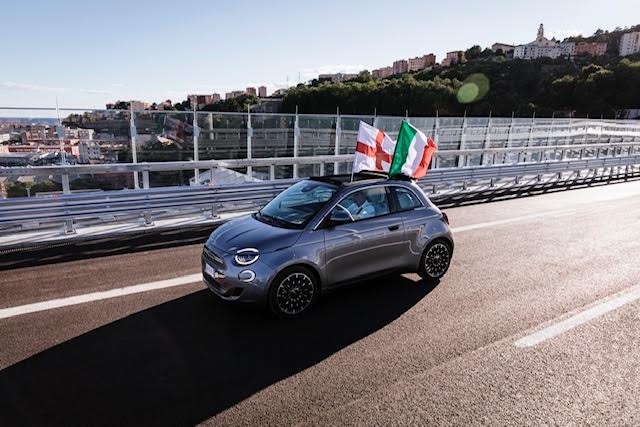Το νέο έργο αντικατέστησε τη γέφυρα Ponte Morandi μετά την τραγική κατάρρευση της τον Αύγουστο του 2018. Το νέο 500, το πρώτο αμιγώς ηλεκτρικό μοντέλο του Ομίλου Fiat Chrysler Automobiles, διέσχισε την μήκους 1.067 μέτρων γέφυρα, πριν αυτή δοθεί στην κυκλοφορία.