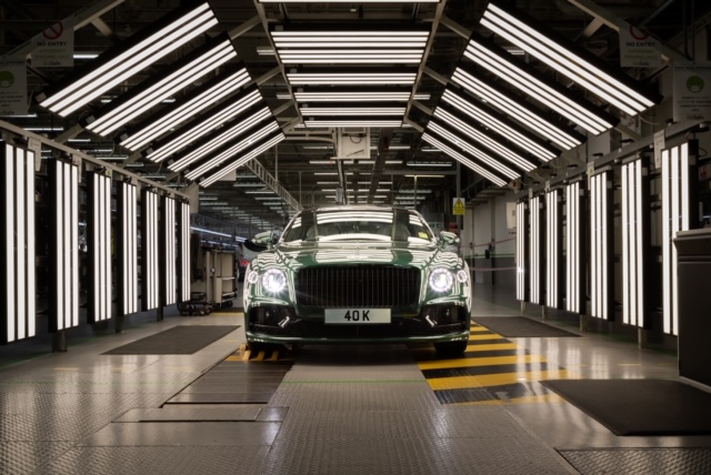 Και οι τρεις γενιές της Flying Spur έχουν σχεδιαστεί, εξελιχθεί και κατασκευαστεί στην έδρα της Bentley στο Crewe, όπου το ορόσημο παραγωγής γιορτάζεται από το εξειδικευμένο εργατικό δυναμικό σχεδιαστών, μηχανικών και εξειδικευμένων τεχνιτών. Κάθε ένα από τα 40.000 αυτοκίνητα που έχουν κατασκευαστεί έχει περάσει περισσότερες από 100 ώρες σε μια αποκλειστική γραμμή παραγωγής, όπου μια ομάδα 250 ατόμων ολοκληρώνει σχολαστικά κάθε Flying Spur στο χέρι. Μόλις τελειώσει και υποβληθεί σε εκατοντάδες ελέγχους ποιότητας, το αυτοκίνητο αποστέλλεται στον απαιτητικό ιδιοκτήτη του, σε μία από τις 68 διαφορετικές χώρες παγκοσμίως που έχει παρουσία η Bentley. Με 40.000 Flying Spurs να έχουν κατασκευαστεί σε 15 χρόνια, περίπου το 50% έχει διατεθεί σε πελάτες στις δύο μεγαλύτερες αγορές της Bentley, την Κίνα και τις Η.Π.Α.. Στην εγχώρια αγορά της Bentley, στο Ηνωμένο Βασίλειο, έχουν διατεθεί περίπου το 10% ενώ αποδεικνύοντας την πραγματικά διεθνή γοητεία του μοντέλου, το υπόλοιπο 40% των αυτοκινήτων απολαμβάνουν πελάτες σε Ευρώπη, Μέση Ανατολή και Ασία-Ειρηνικό.