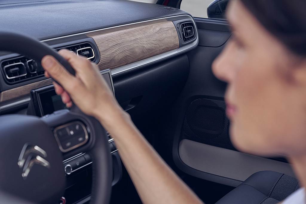 Στο εσωτερικό του Νέου C3, ο χώρος για τους επιβάτες προσφέρει πλουσιοπάροχα την ηρεμία που χρειάζονται οι μετακινήσεις και τη γαλήνη που έρχεται απευθείας από τον κόσμο του La Maison Citroën (με τον χρωματισμό Techwood) και παραπέμπει σε σκανδιναβική αισθητική σαλονιού. Εκτός από τη βασική επιλογή σε ότι έχει να κάνει με τον διάκοσμο της καμπίνας, το Νέο C3 διατίθεται με 2 νέα προαιρετικά χρώματα εσωτερικού χώρου, ένα ζεστό και κομψό και ένα που αποπνέει περισσότερο δυναμισμό.