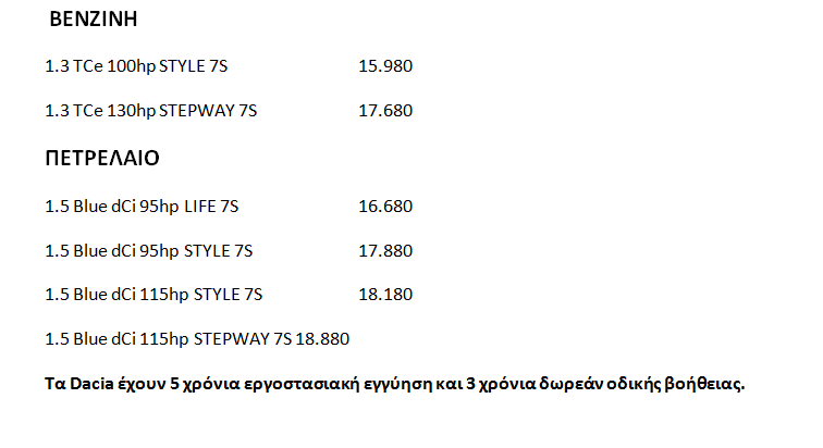 Πρόκειται για ένα σύγχρονο, πολυχρηστικό, 7θέσιο μοντέλο, με compact εξωτερικές διαστάσεις, πλούσιους εσωτερικούς χώρους, που εξασφαλίζουν άνετες μετακινήσεις για μέχρι και 7 επιβάτες, αλλά και δυνατότητα μεταφοράς έως 1.861 λίτρων αποσκευών, ανάλογα τις ανάγκες. Η σχεδίαση, ο εξοπλισμός, η ποιότητα κατασκευής διαρκώς βελτιώνονται και η Dacia γίνεται υπολογίσιμη δύναμη.