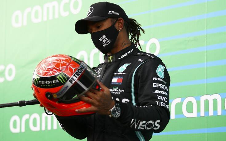 Ο Βρετανός πιλότος της Mercedes τερμάτισε πρώτος και στο Γκραν Πρι του Νίρμπουργκρινγκ και πανηγύρισε την 91η νίκη του στη Formula 1, ισοφαρίζοντας την επίδοση του Σουμάχερ.
