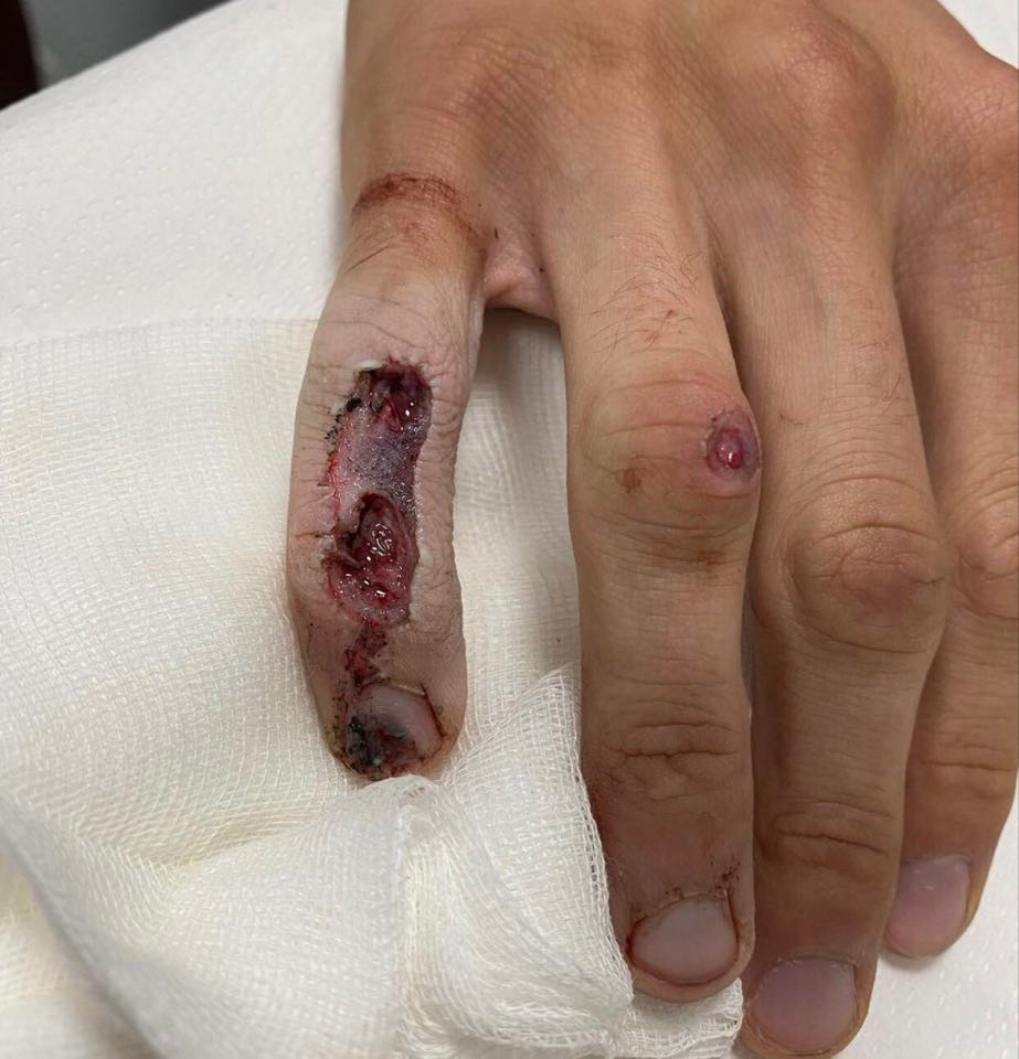Πάντως, οι εικόνες που δημοσίευσε στο Instagram του είναι σοκαριστικές και αποκαλύπτουν τα δεινά και επίσης το θάρρος αυτού του αναβάτη. Το μικρό του δάχτυλο του δεξιού χεριού είναι πρησμένο και με έναν «φουσκωμένο» τένοντα.