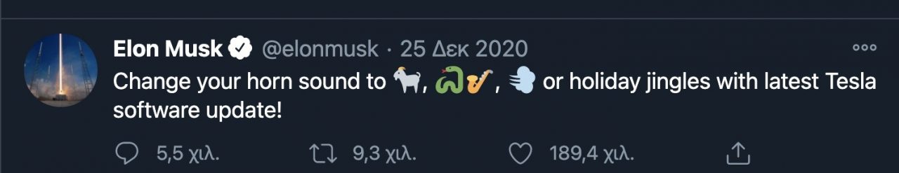 Με ιδιαίτερα χαρά ο Elon Musk ανακοίνωσε πως πλέον τα Tesla θα παίζουν τα κάλαντα, σαξόφωνο ή θα… πέρδονται!