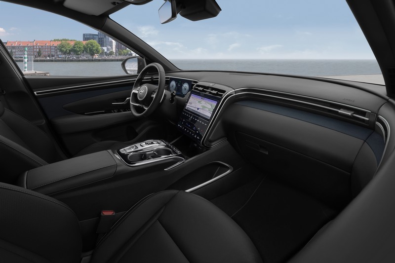 Η εξέλιξη του εσωτερικού σχεδιασμού του Νέου Tucson οδήγησε σε μια πιο χαμηλή θέση του πίνακα οργάνων. Η νέα οθόνη AVN-T των 10,25 ιντσών προσδιορίζει το κέντρο του ταμπλό. Οι σχεδιαστές της Hyundai δεν επέλεξαν φυσικούς διακόπτες και κουμπιά, επομένως όλες οι λειτουργίες AVN για τη θέρμανση, τον εξαερισμό και τον κλιματισμό ελέγχονται μέσω αφής. Το φαρδύ πάνω μέρος του ταμπλό ενώνεται άψογα με τις επενδύσεις στις πόρτες, αγκαλιάζοντας στην ουσία τους εμπρός επιβάτες. Αυτά τα φουτουριστικά χαρακτηριστικά εξασφαλίζουν μια ακόμα πιο σύγχρονη αίσθηση καθώς και νέα επίπεδα υψηλής ποιότητας σχεδιασμού.
