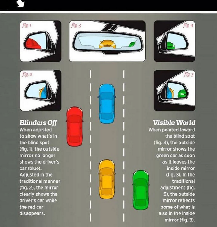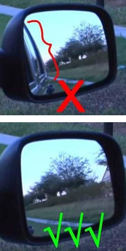 Πολλοί έχουν τον πλαϊνό καθρέπτη με τέτοιο τρόπο ώστε να βλέπουν και το πίσω μέρος του οχήματός τους αλλά κάτι τέτοιο δεν είναι το απολύτως σωστό σύμφωνα με το αμερικανικό Πανεπιστήμιο του Ουισκόνσιν-Μάντισον σε σχετική μελέτη του 2012: «Στην πραγματικότητα τα ‘‘τυφλά σημεία’’ είναι ένα πράγμα που ανήκει στο παρελθόν! Σε κάθε αυτοκίνητο ή βανάκι που έχει φτιαχτεί τα τελευταία 10 ή και 20 χρόνια, οι καθρέφτες μπορούν να ρυθμιστούν ώστε να μην υπάρχουν τυφλά σημεία».