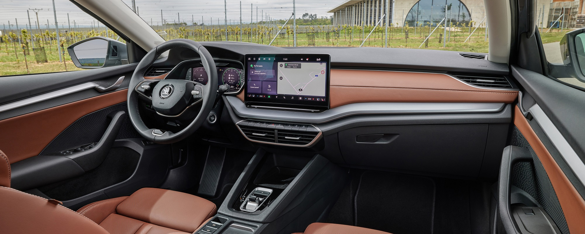 Παράλληλα, για πρώτη φορά, ως μέρος του προαιρετικού εξοπλισμού κάνει την εμφάνισή της μια ολοκαίνουργια οθόνη αφής 13” για το σύστημα ενημέρωσης και ψυχαγωγίας. To τελευταίο, είναι σε θέση να φιλοξενήσει τεχνολογία τεχνητής νοημοσύνης ChatGTP που ενσωματώνεται στην φωνητική βοηθό, την γνωστή Laura της Škoda.