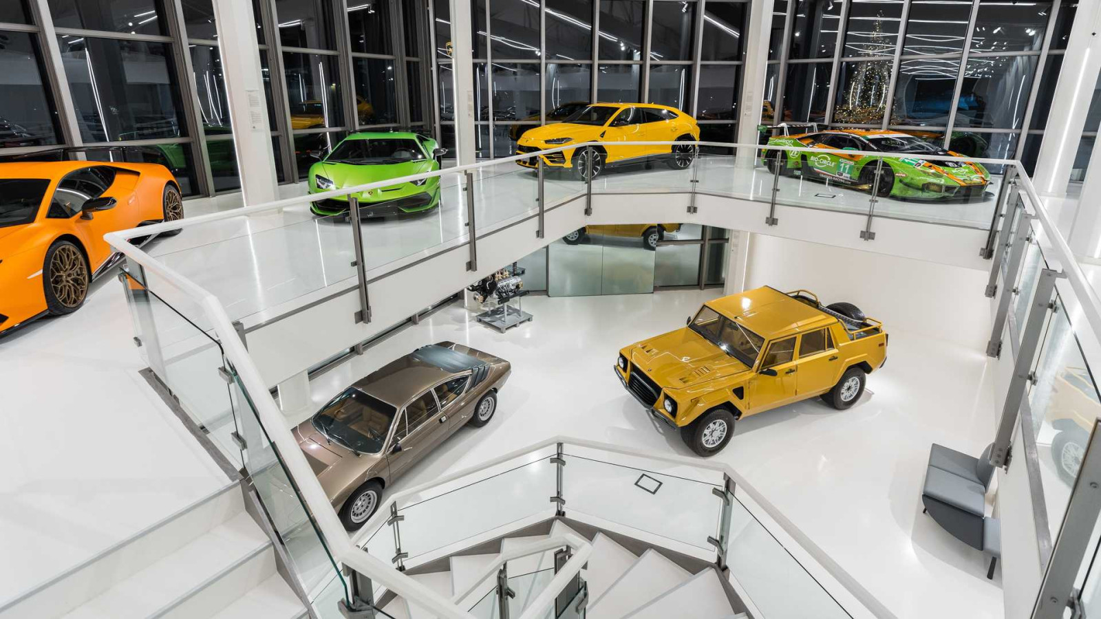 Τοποθετημένα σε στρατηγικά σημεία για την προβολή της ιστορίας της φίρμας, τα αυτοκίνητα αυτά βρίσκονται πάνω σε νέα αστραφτερά λευκά πατώματα και τοίχους. Αντίθετα με το παρελθόν του μουσείου, δε θα δείτε πάνω σε τοίχους αυτοκίνητα, όπως την Diablo GT…