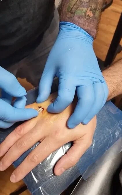 Η εμφύτευση του μικρότερου τσιπ στο αριστερό του χέρι ήταν ευκολότερη από το μεγαλύτερο τσιπ NFC στο δεξί του χέρι, σημείωσε.