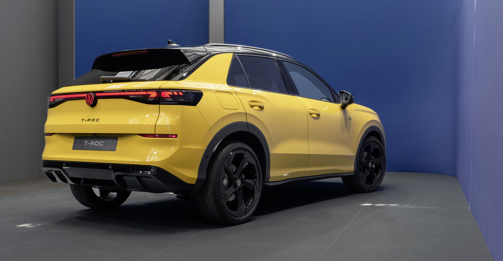 Με τις εύπεπτες, καθαρές γραμμές και τις καμπύλες του αμαξώματος να αντανακλούν μια ισχυρότερη προσωπικότητα κι έναν πιο έντονο, νεανικό χαρακτήρα σε σχέση με την εν κυκλοφορία γενιά. Πολύ περισσότερο όμως, οι σχεδιαστές κατάφεραν και πέτυχαν έναν εξαιρετικό για τα δεδομένα της κατηγορίας συντελεστή οπισθέλκουσας της τάξης του Cd 0,29 (από 0,34). Η μάσκα που προέρχεται από τα μεγαλύτερα Tiguan, Tayron και τη σειρά ID. είναι τοποθετημένη πιο ψηλά και σε συνδυασμό με την κυψελοειδή γρίλια δίνουν έξτρα πόντους δυναμισμού στο σύνολο. Tην ώρα που τα μακρόστενα φώτα LED εμπρός και πίσω ενώνονται με μια οριζόντια, φωτιζόμενη μπάρα που καταλήγει στους επίσης φωτιζόμενους λογότυπους VW. Ένα ευπρόσδεκτο, σύγχρονο gimmick που χαρίζει στο νέο T-Roc εντυπωσιακή φωτεινή ταυτότητα, ιδίως τη νύχτα. Tο σπουδαιότερο νέο αφορά τους προβολείς που προαιρετικά μπορούν να υιοθετήσουν την κορυφαία τεχνολογία IQ.LIGHT LED matrix που είδαμε για πρώτη φορά στα μεγαλύτερα μοντέλα της φίρμας. Μια τεχνολογία που είναι διαθέσιμη για πρώτη φορά σε αυτοκίνητο αυτής της κατηγορίας από τη μάρκα. Αποδεικνύοντας στην πράξη πως ο σχεδιασμός του νέου Volkswagen T-Roc δεν βασίζεται μόνο στο αισθητικό κομμάτι αλλά στην πλήρη λειτουργικότητα. Στο προφίλ, το μάτι πέφτει στις νέας σχεδίασης ζάντες και πολύ περισσότερο στην κεκλιμένη γραμμή οροφής που δίνει μια κουπέ εσάνς στο γερμανικό B-SUV. Η σχεδίαση του πίσω μέρους ακολουθεί την εκμοντερνισμένη λογική και παραπέμπει στα μοντέλα της οικογένειας ID. Ως προς τις διαστάσεις με μήκος στα 4,37 m το νέο T-Roc είναι 12 πόντους μεγαλύτερο σε σχέση με τον προκάτοχό του. To πλάτος φτάνει τα 1,82 m και το ύψος τα 1,56 m. Αυξημένο, κατά 2,8 cm είναι και το μεταξόνιο, στα 2,63 m. Έτσι, το αυτοκίνητο τοποθετείται στο άνω άκρο της κατηγορίας από άποψη χώρων μιας και τέσσερις ενήλικες ακόμη και άνω του 1,85 m θα φιλοξενηθούν χωρίς μεγάλες παραχωρήσεις στην φαρδιά καμπίνα. Οι μεγαλύτερες διαστάσεις έχουν ευνοήσει και το πορτμπαγκάζ, η χωρητικότητα του οποίου αυξήθηκε από τα 445 lt σε 465 lt.