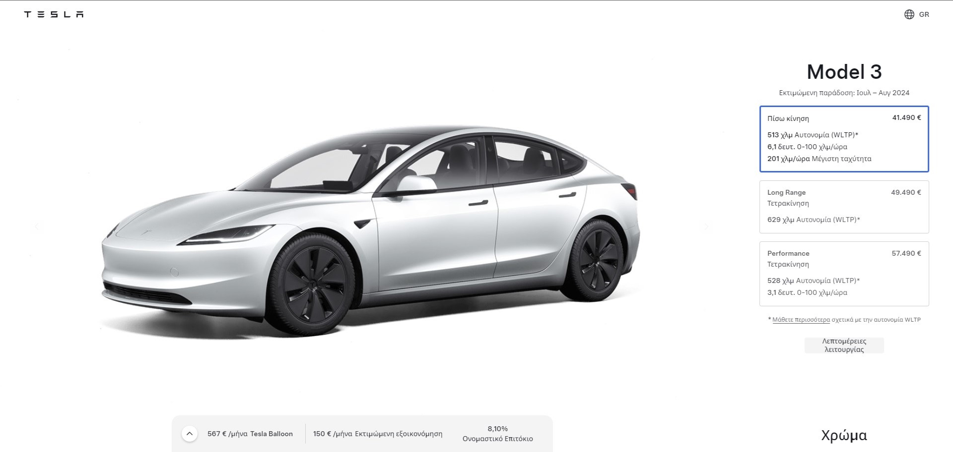 Οι νέες τιμές που διαμορφώνονται αυτή τη στιγμή θέλουν το εισαγωγικό Model 3 να ξεκινά από τα €41.490, ενώ μέχρι πρόσφατα κόστιζε €39.990. Στην παραπάνω τιμή πρέπει να προστεθούν €1.000 για έξοδα ετοιμασίας, αλλά δεν χρειάζεται να προσθέσετε τίποτα από έξτρα εξοπλισμό.