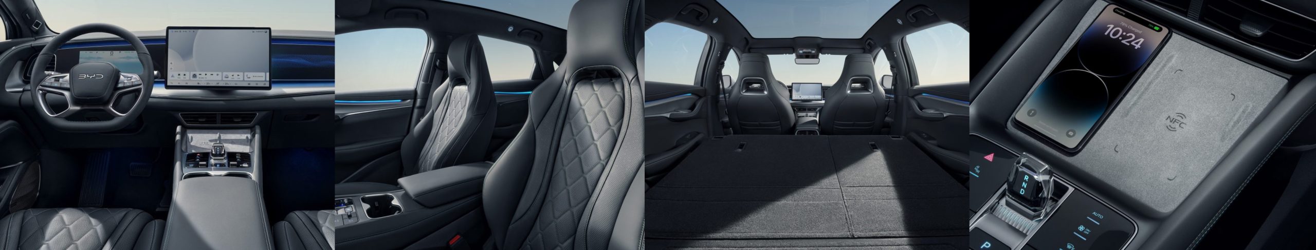 Όπως αρμόζει σε ένα μοντέλο της σειράς Ocean Series, το ταμπλό του συνδυάζει την τυπική υψηλή τεχνολογία της BYD με ρέοντα σχήματα και μια κεντρική κονσόλα δύο επιπέδων που εξασφαλίζει μια αέρινα εκλπετυσμένη κομψότητα.