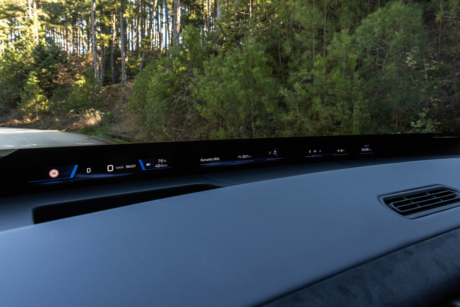 Εμπρός σου, στο τμήμα που παραδοσιακά θα είχε τον πίνακα οργάνων, βλέπεις όλες τις βασικές πληροφορίες οδήγησης. Στα υπόλοιπα τμήματα μπορείς να εμφανίσεις πλοήγηση, μουσική, ακόμα και τον καιρό. Το έξυπνο είναι ότι ποτέ δεν σε αποσπά. Είναι εκεί, διακριτικό, λειτουργικό.