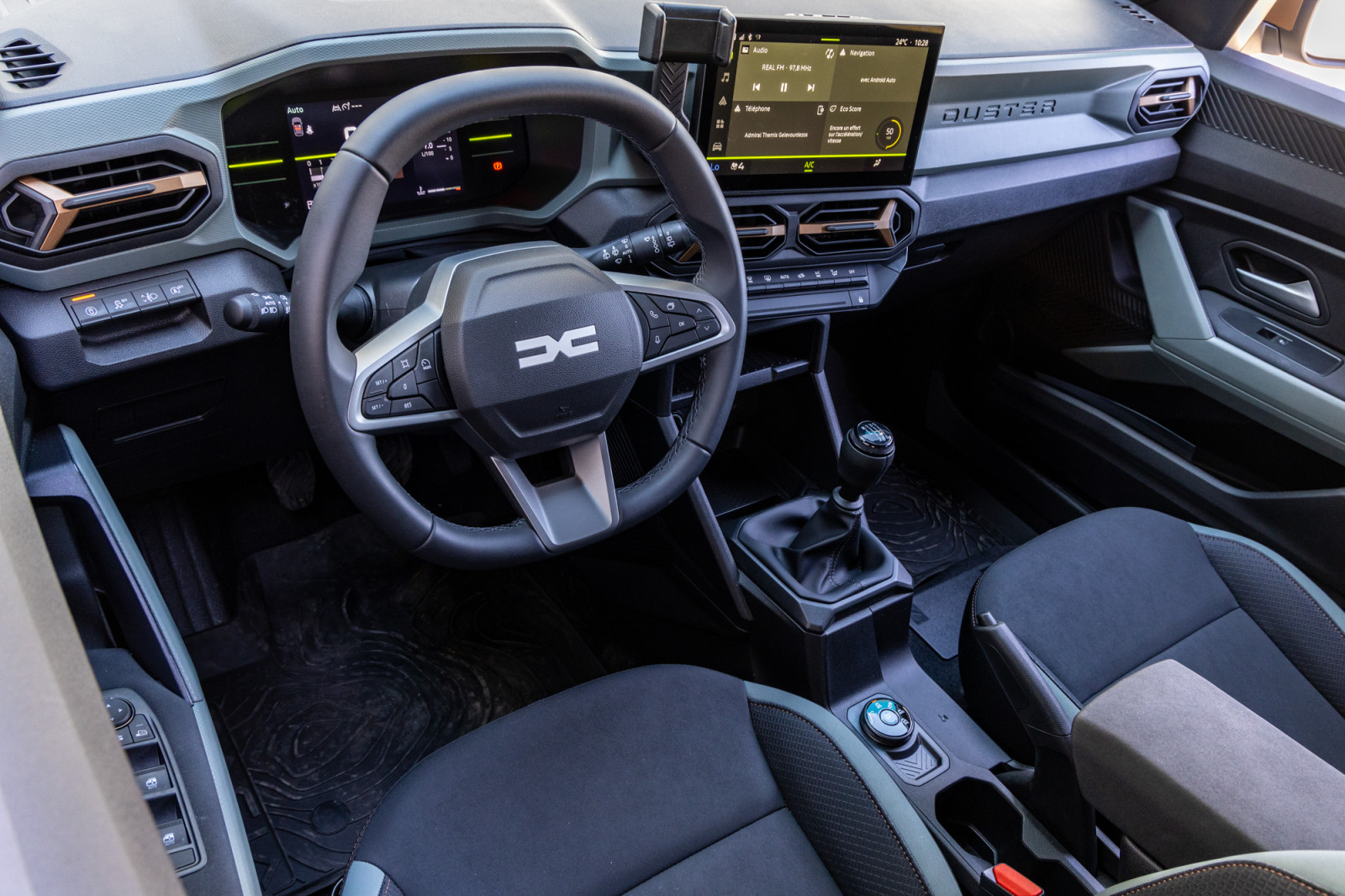 Διά ταύτα λοιπόν, το Dacia Duster 4×4 επιστρέφει με τον οικείο βενζινοκινητήρα τούρμπο TCe 130 με ήπια υβριδική τεχνολογία. Που σημαίνει ότι διαθέτει 48βολτο ηλεκτρικό σύστημα με μπαταρία 0,8 kWh που βρίσκεται κάτω από το κάθισμα του συνοδηγού. Με απόδοση 131 άλογα, όσα και στο δικίνητο Duster, το σημείο-κλειδί όπως θα δούμε παρακάτω παραμένουν τα 230 Nm. Ή καλύτερα, πού αυτά αποδίδονται. Η απάντηση είναι ότι χρειάζεται να περιμένεις τις 2.100 rpm για να αποδόσει το μοτέρ τη μέγιστη ροπή του. Βέβαια, η Dacia κόντυνε τις σχέσεις του 6αριού χειροκίνητου σασμάν (του μόνου διαθέσιμου), προκειμένου το αυτοκίνητο να ανταποκρίνεται με επάρκεια στον ρόλο του. Που θα δούμε κατά πόσον ισχύει στις επόμενες αράδες…