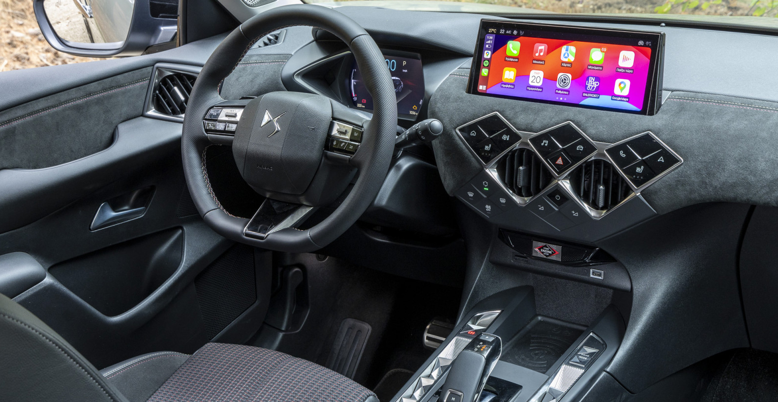 Στο κέντρο του ταμπλό, είναι τοποθετημένη η στάνταρ οθόνη υψηλής ευκρίνειας 10,3” που ενσωματώνει το τελευταίας γενιάς λογισμικό DS Iris System, υποστηρίζοντας φωνητικές εντολές, ασύρματη σύνδεση με Apple CarPlay και Android Auto. Η απόκριση είναι πολύ καλή, όπως και το ιντερφέις και το μενού της κατανοητό κι εύκολο στη χρήση καθώς είναι προσαρμόσιμο με widgets.