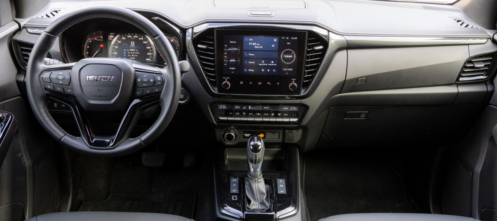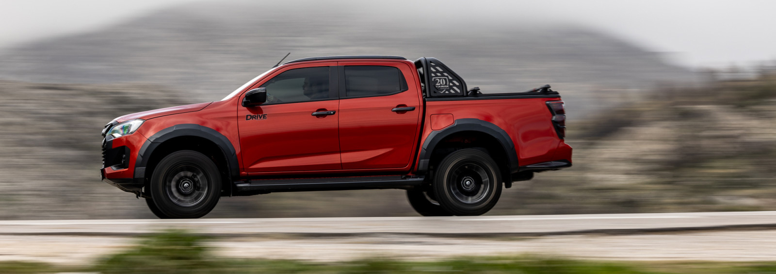Αυτό συνέβη διότι η εξαφάνιση των προσιτών, παραδοσιακών επιβατικών 4×4, σε συνδυασμό με την τεχνολογική αναβάθμιση της κατηγορίας των pick-up, τα έχει αναδείξει σε μια ελκυστική εναλλακτική. Πλέον, τα «ημί-φορτηγά» δεν απευθύνονται μόνο σε επαγγελματίες που χρειάζονται αντοχή και ικανότητα μεταφοράς φορτίου, αλλά και σε καθημερινούς οδηγούς που αναζητούν διευρυμένες ικανότητες για off-roading. Σε αυτό το πλαίσιο, το Isuzu D-Max, που κυκλοφορεί στην ελληνική αγορά από το 2005, έχει καταφέρει να χτίσει τη δική του φήμη, συνδυάζοντας την ιαπωνική αξιοπιστία με έναν χαρακτήρα που ξεχωρίζει τόσο στην άσφαλτο όσο και στα πιο δύσβατα εδάφη. Η πρόσφατη ανανέωση της τρέχουσας γενιάς ενίσχυσε ακόμη περισσότερο αυτή την εικόνα. Πέντε χρόνια ύστερα από την παρουσίασή του, το D-Max απέκτησε πιο μοντέρνους προφυλακτήρες, ανασχεδιασμένη μάσκα και νέες φωτιστικές μονάδες εμπρός και πίσω. Η συνολική εικόνα γίνεται ακόμα πιο εντυπωσιακή όταν εξοπλιστεί με τα προαιρετικά πακέτα off-road που προσφέρει η ελληνική αντιπροσωπεία. Ή, στην περίπτωσή μας, με τα έξτρα που περιλαμβάνονται στην επετειακή έκδοση «20 Years» της δοκιμής, η οποία βασίζεται στην κορυφαία έκδοση εξοπλισμού, Arena. H τελευταία ξεχωρίζει από τη νέα μάσκα, το ρολμπάρ με σκαλιστά στο πλάι τα χρόνια παρουσίας του μοντέλου στην Ελλάδα, τις μαύρες κουπαστές και το ηλεκτρικό ρολό αλουμινίου με ενσωματωμένο LED φωτισμό. Πέρα από τις κοσμητικές αλλαγές, τον διαφορετικό τόνο της έκδοσης ορίζει η ανάρτηση που συντίθεται από διπλά ψαλίδια εμπρός και άκαμπτο άξονα με φύλλα σούστας πίσω. Έρχεται με το κιτ Sport Old Man Emu της ARB που περιλαμβάνει τέσσερα αμορτισέρ της σπορ σειράς, δύο σούστες και δύο σετ σινεμπλόκ πολυουρεθάνης, αυξάνοντας την απόσταση από το έδαφος κατά πέντε πόντους. Επιπλέον, το αυτοκίνητο διαθέτει 17άρες αλουμινένιες ζάντες της Fuel με αρνητικό offset και τα νέα λάστιχα M+S, Goodyear Duratrac RT, σε διάσταση 265/65, που ενισχύουν τον off-road χαρακτήρα του.