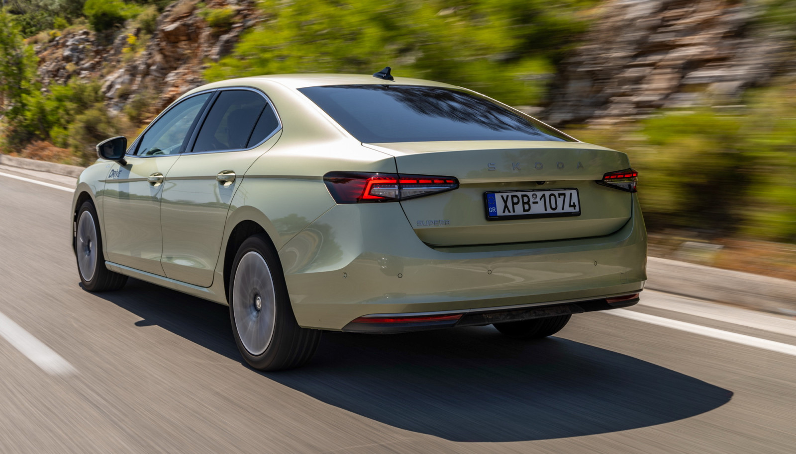 Μέσα στη χρονιά θα προστεθεί και το plug-in hybrid με 204 ίππους, με το νέο σύστημα του Ομίλου VW, ηλεκτρική αυτονομία περίπου 135 km και ταχεία φόρτιση σε DC στα 50 kW -σε άλλες ευρωπαϊκές αγορές ήδη διατίθεται. Στο σημείο αυτό να αναφέρουμε ότι η ελληνική αντιπροσωπεία εισάγει μόνο την μπερλίνα και όχι το Combi, για τον προφανή λόγο του ελάχιστου ενδιαφέροντος για στέισον από τους καταναλωτές στη χώρα μας. Οδηγώντας το ντίζελ Superb, διαπιστώνεις όλα τα θετικά (και κάμποσα αρνητικά) των μοντέλων TDI του VW Group. Ξεκινώντας από την εντυπωσιακά χαμηλή κατανάλωση. Είναι εύκολο να πέσεις κάτω από τα 5 lt/100 km σε δρόμους της περιφέρειας και να διατηρηθείς κάτω από τα 5,5 lt/100 km στην εθνική. Κι αυτό δεν έχει να κάνει μόνο με την εγγενή αποδοτικότητα του TDI, αλλά και με την εξαιρετική αεροδυναμική του αυτοκινήτου, με τον συντελεστή Cx να φτάνει το εντυπωσιακό 0,23! Εκείνο που έρχεται πρώτο στο μυαλό είναι ότι το κύριο μειονέκτημα αυτού του κινητήρα θα ήταν η περιορισμένη ισχύς, για ένα αυτοκίνητο μήκους 4,9 μέτρων και βάρους λίγο κάτω από 1.700 κιλά. Κι όμως! Το μοτέρ έχει ροπή, το κιβώτιο DSG7 είναι άμεσο και πυκνό, εξαφανίζοντας οποιαδήποτε «τρύπα» και αντάμα αποδίδουν πολύ ικανοποιητικές επιδόσεις. Δεν μπορούμε να πούμε το ίδιο και για τον θόρυβο, καθώς ο δίλιτρος TDI γίνεται αισθητά θορυβώδης όταν πιέζεται. Παρόλο που ο όμιλος Volkswagen έχει βελτιώσει σημαντικά αυτήν την πτυχή στους κινητήρες TDI, φαίνεται ότι υπάρχει ακόμα περιθώριο βελτίωσης…