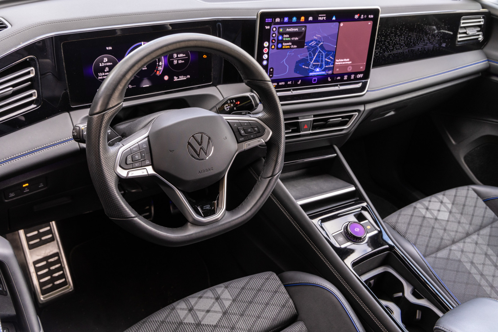 Για την οδήγηση του Tiguan eHybrid, το πιο απλό είναι να το αφήσεις να διαχειρίζεται μόνο του τις λειτουργίες. Αυτό αποδεικνύεται καλύτερο από το να προσπαθείς με περίπλοκες ρυθμίσεις να ανεβάσεις την αποδοτικότητα -δεν θα καταφέρεις ούτε 5%. Για τη μέγιστη αποδοτικότητα, και εφόσον η μπαταρία έχει αρκετή ενέργεια, το αυτοκίνητο ξεκινά αυτόματα σε 100% ηλεκτρικό πρόγραμμα, με την ανάκτηση ενέργειας να ελέγχεται αυτόματα -μπορείς να τη ρυθμίσεις και χειροκίνητα μέσα από την οθόνη σε ήπια ή ισχυρή. Η διαδικασία βελτιστοποιείται χάρη στην ανάλυση χαρτογραφικών δεδομένων του GPS και του ραντάρ του adaptive cruise control, ανάλογα με την τοπογραφία και την κίνηση.Όσοι οδηγοί θέλουν μεγαλύτερη εμπλοκή έχουν τη δυνατότητα να πειραματιστούν με τα διάφορα προγράμματα οδήγησης. Μέσα από τον περιστροφικό διακόπτη στην κονσόλα ή την οθόνη του infotainment ρυθμίζονται η απόκριση του γκαζιού, η υποβοήθηση του τιμονιού, η λειτουργία της ενεργής ανάρτησης DCC και ο κλιματισμός.