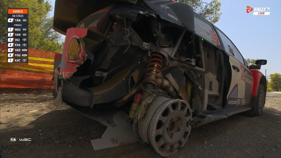 Τα πράγματα εξελίχθηκαν ακόμα χειρότερα για τον οδηγό της Hyundai, όταν μετά από 10 χιλιόμετρα, είδε αυτή τη φορά το εμπρός δεξιά ελαστικό του να κλατάρει. Ο Tänak δεν άλλαξε ελαστικό και έφτασε στον τερματισμό, χάνοντας κάτι παραπάνω από τέσσερα λεπτά. Κι έτσι, από την πρώτη έπεσε στην τέταρτη θέση.