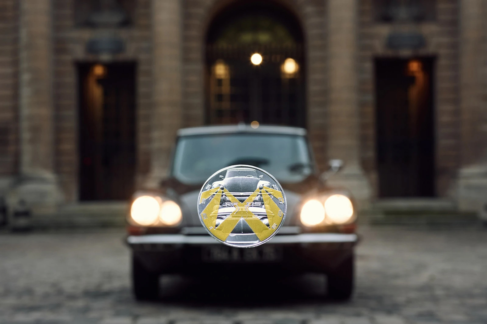 Στο πλαίσιο της επετείου, παρουσιάζεται ένα συλλεκτικό ασημένιο νόμισμα των 10 ευρώ, που απεικονίζει δύο εμβληματικά μοντέλα: την DS 19 του 1955 και την DS 23 του 1975, αναδεικνύοντας την εξέλιξη του εμβληματικού οχήματος.