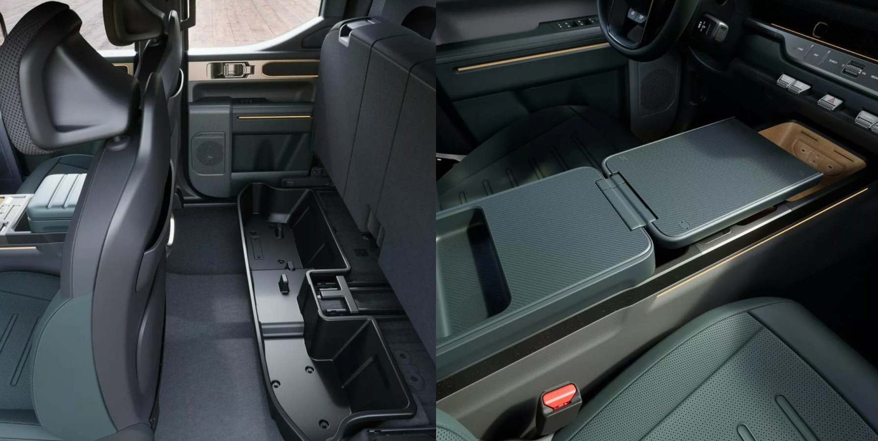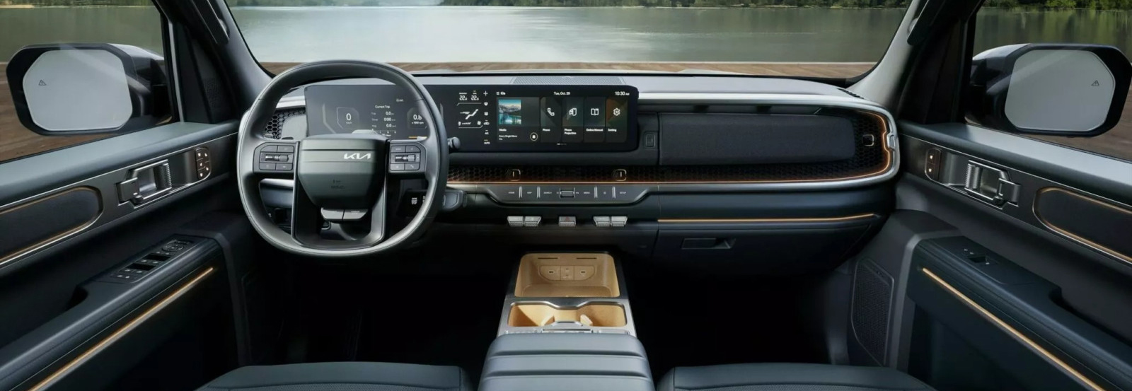 Περνώντας στο εσωτερικό, αν δεν κοιτάξεις πίσω στην ουσία δεν αντιλαμβάνεσαι πως βρίσκεσαι σε ένα σκληροτράχηλο pick-up. Mε το περιβάλλον να είναι πλήρως ψηφιακό και καλαίσθητο, στα γνωστά πλέον πρότυπα της Kia. Πίσω από το τιμόνι υπάρχει ένας ψηφιακός πίνακας οργάνων στις 12,3” που παρέχει στον οδηγό πλήθος πληροφοριών.