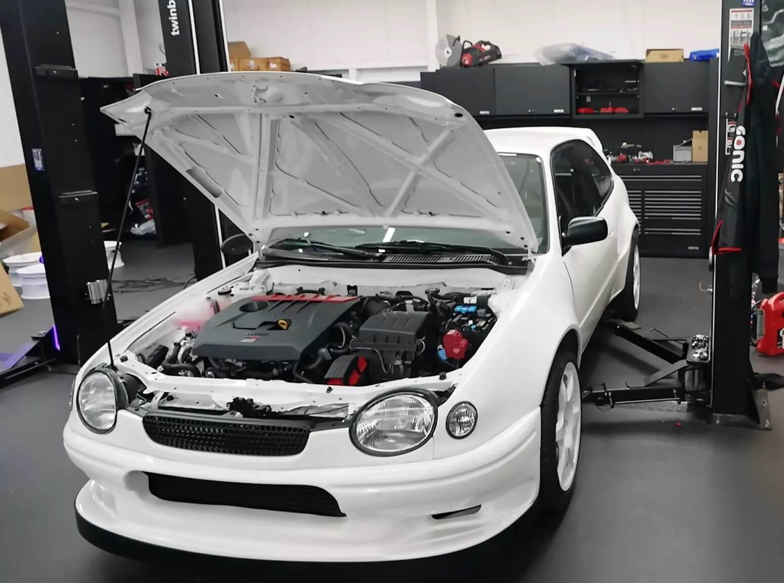 Ο γερμανικός οίκος βελτιώσεων JP Performance GmbH ανέλαβε να διορθώσει την «αδικία». Τοποθετώντας στην Toyota Corolla E110 τα μηχανικά μέρη του GR Yaris.