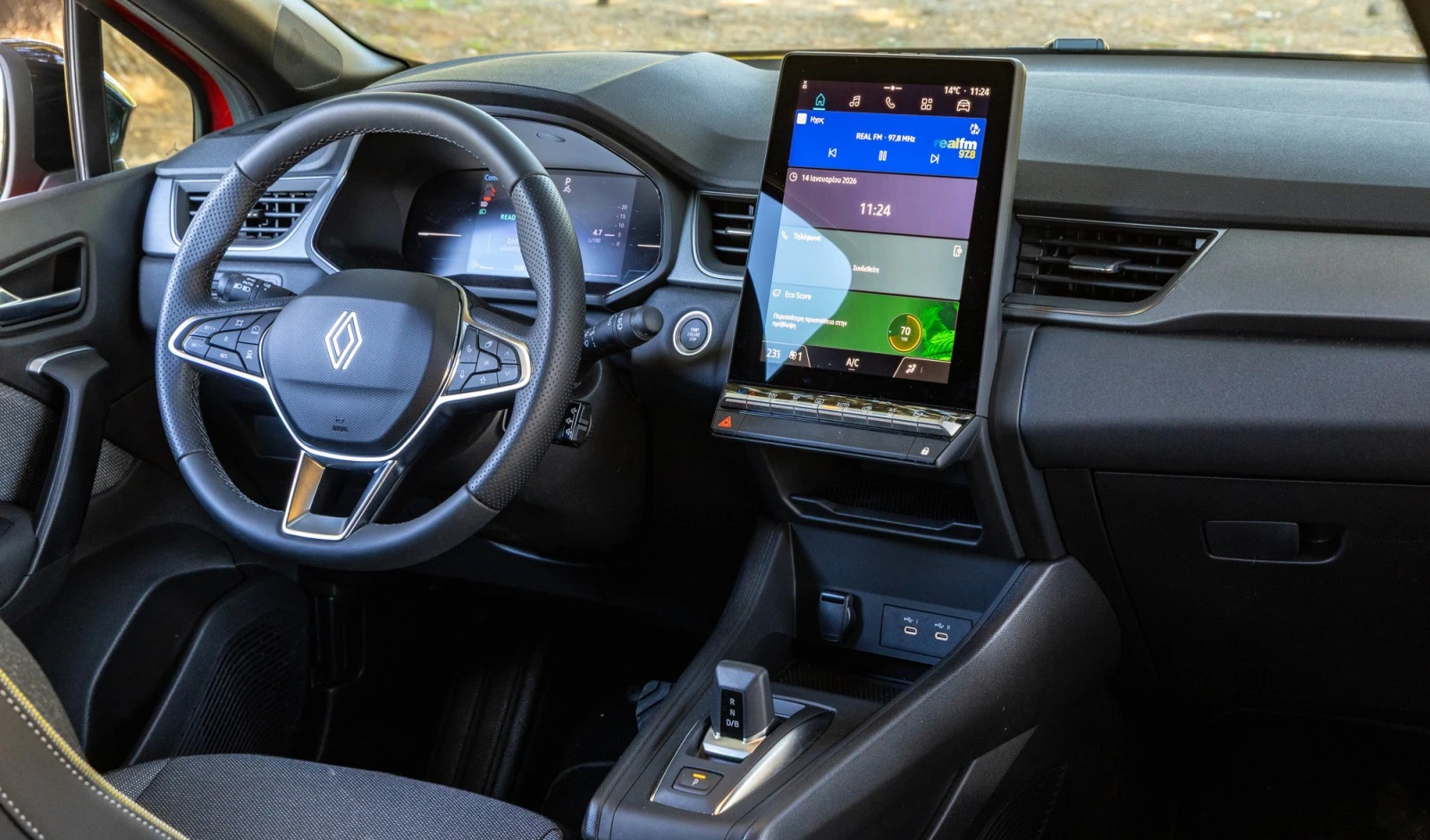 Η εικόνα της καμπίνας ευθυγραμμίζεται πλήρως με τις ψηφιακές και τεχνολογικές ανάγκες της εποχής. Ο ψηφιακός πίνακας οργάνων έχει διαγώνιο 7” σε όλες τις εκδόσεις και η επίσης στάνταρ, κάθετα τοποθετημένη οθόνη 10,4” που ενσωματώνει το infotainment OpenR Link θυμίζει smartphone, υποστηρίζει ελληνικό μενού και προσφέρει ασύρματη συνδεσιμότητα με Android Auto και Apple CarPlay.