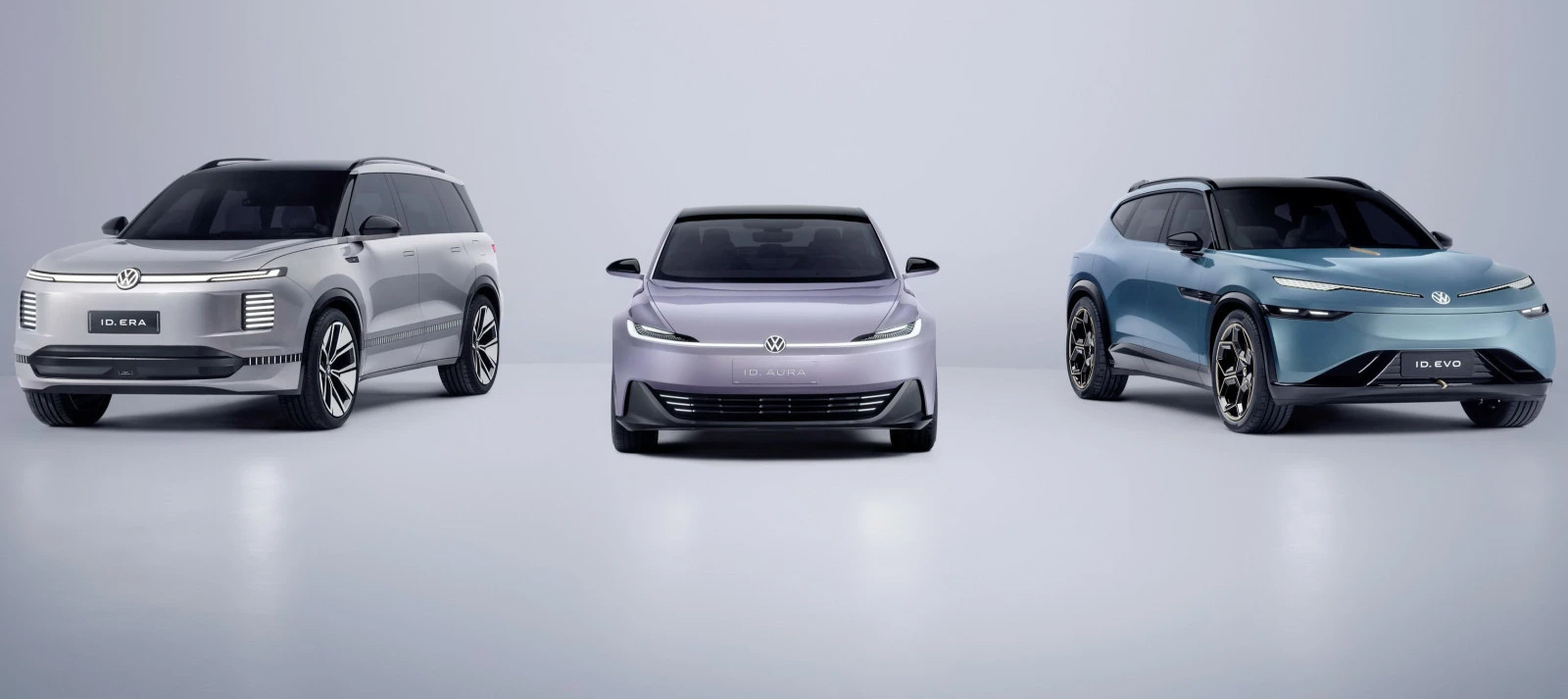Όπως αναμενόταν, αυτά τα τρία πρωτότυπα προέρχονται από κοινοπραξίες: ID Aura (FAW-Volkswagen), ID Era (SAIC-Volkswagen) και ID Evo (Volkswagen-Anhui). Το πρώτο πρωτότυπο, το Aura, είναι μια μπερλίνα, άγνωστου προς το παρόν μήκους, που στοχεύει πελάτες της κατηγορίας A, οι οποίοι είναι ιδιαίτερα ευαίσθητοι στο θέμα της τιμής. Η μάρκα αναφέρει ότι διαθέτει ηλεκτρικό κινητήριο σύστημα και ότι το πολυμεσικό περιβάλλον χρήσης του θυμίζει smartphone. Το δεύτερο, το ID Era, είναι ένα μεγάλο SUV με τρεις σειρές καθισμάτων. Διαθέτει επαυξημένη αυτονομία, κάτι πρωτόγνωρο για τη Volkswagen, προσφέροντας 1.000 km αυτονομία, εκ των οποίων τα 300 χιλιόμετρα αποκλειστικά με την μπαταρία. Τέλος, το ID Evo είναι επίσης ένα μεγάλο SUV, αλλά λειτουργεί αποκλειστικά με ηλεκτρική ενέργεια. Δεν δόθηκαν τεχνικές λεπτομέρειες, εκτός από το ότι βασίζεται σε αρχιτεκτονική 800 V. Η Volkswagen δεν αποκαλύπτει ακόμα πολλά γι’ αυτά τα τρία μελλοντικά μοντέλα. Ωστόσο, σημειώνει ότι θα είναι εξοπλισμένα με συστήματα βασισμένα στην τεχνητή νοημοσύνη για «υψηλά αυτοματοποιημένη οδήγηση». Αν η Volkswagen δεν θέλει να χάσει κι άλλο έδαφος στην Κίνα, οφείλει πάση θυσία να μη μείνει πίσω από τις κινεζικές μάρκες, οι οποίες διαπρέπουν σε αυτόν τον τομέα.