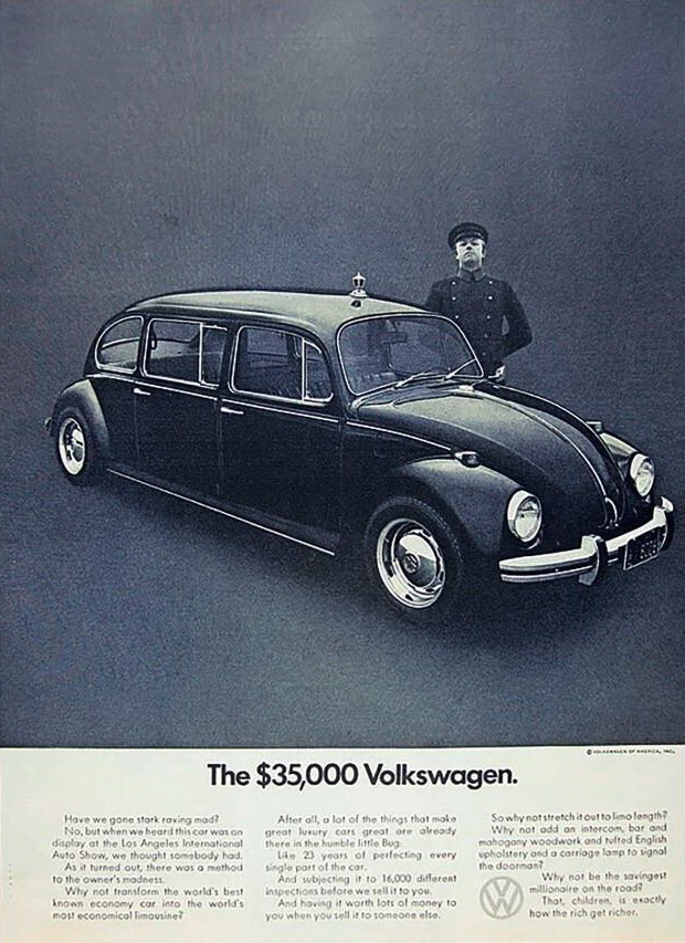 Το αυτοκίνητο παρουσιάστηκε στην Έκθεση Αυτοκινήτου του Los Angeles το 1969, όπου και απέκτησε το παρατσούκλι «Rollswagen». Η Volkswagen το χρησιμοποίησε ως διαφημιστικό εργαλείο, παρουσιάζοντάς το ως «το Volkswagen των 35.000 δολαρίων». Μπορεί το ποσό να μη φαίνεται τεράστιο σήμερα, αλλά αξίζει να θυμηθούμε πως ο βασικός Σκαραβαίος κόστιζε μόλις 2.063 δολάρια και μια Lamborghini Miura μόλις 20.000!