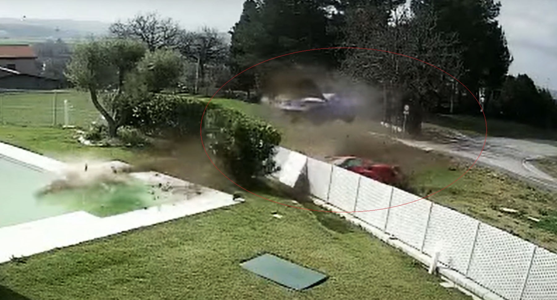 Η ταχύτητα που είχαν αναπτύξει τα δύο αυτοκίνητα ήταν τόσο μεγάλη με αποτέλεσμα και τα δύο – μια κόκκινου χρώματος 296 GTB και μια μπλε χρώματος F12 Berlinetta – να εκτοξευθούν ενώ στο δεύτερο εκδηλώθηκε και φωτιά.