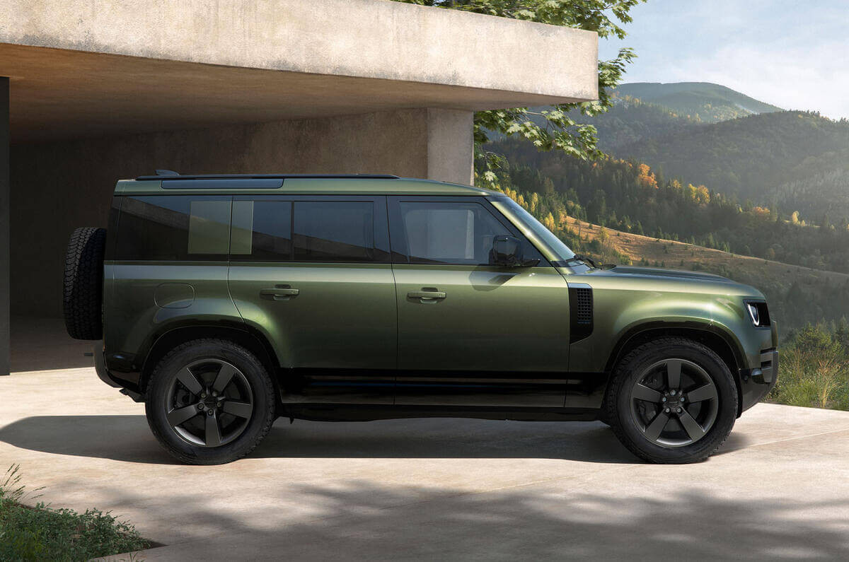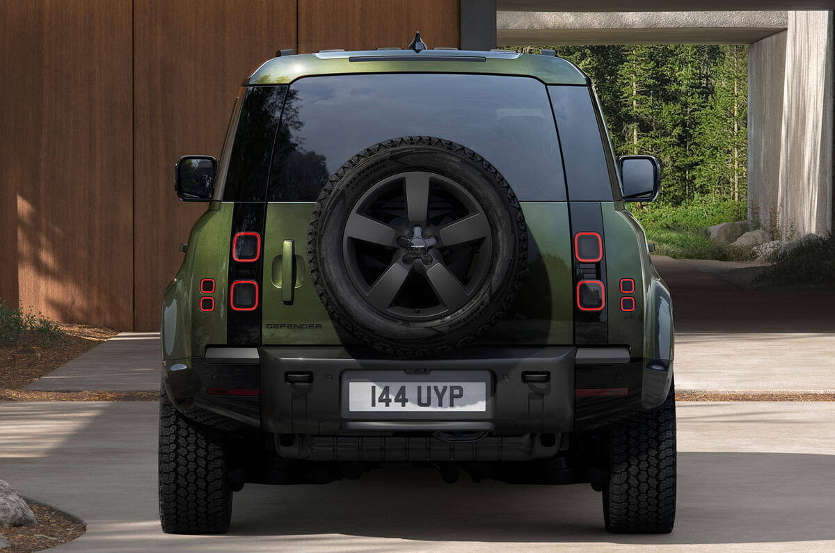 Η εξωτερική ανανέωση περιλαμβάνει έναν αναθεωρημένο σχεδιασμό των μπροστινών φωτιστικών σωμάτων. Με μικρότερο κεντρικό τμήμα, που θα παρέχει ένα «διακριτικό» γραφικό όταν ενεργοποιείται. Το Land Rover Defender καρπώνεται επίσης την εφαρμογή σκούρας απόχρωσης στα πίσω φώτα.