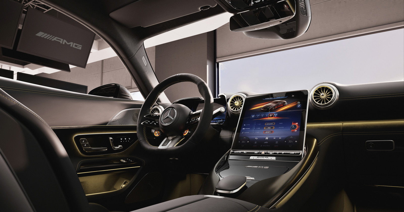 H GT APXGP Edition δημιουργήθηκε για να γιορτάσει τη συμμετοχή της AMG στην κινηματογραφική παραγωγή «F1», με πρωταγωνιστές τους Brad Pitt και Damson Idris. Οι δύο ηθοποιοί ενσαρκώνουν τους Sonny Hayes και Joshua Pearce, οδηγούς της φανταστικής ομάδας Apex Grand Prix. Η ειδική έκδοση APXGP αντλεί την έμπνευσή της από τα χρώματα της κινηματογραφικής ομάδας και ξεχωρίζει χάρη στις χαρακτηριστικές χρυσές λεπτομέρειες, Race Gold. Αυτές εντοπίζονται στη μάσκα Panamericana, στον διαχύτη, στα φτερά, στις ποδιές, αλλά και στις ελαφριές ζάντες αλουμινίου, με τις δαγκάνες των κάρμπον-κεραμικών φρένων να έρχονται σε μαύρο χρώμα για αντίθεση.