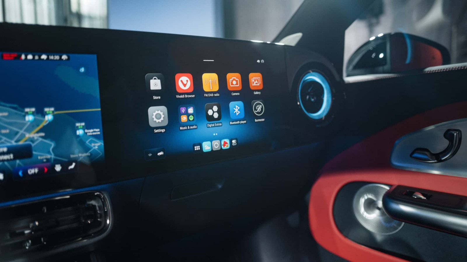 Η καμπίνα της νέας Shooting Brake είναι ως επί το πλείστον πανομοιότυπη με της σεντάν, που σημαίνει ότι μια ενιαία επίπεδη επιφάνεια μπορεί να φιλοξενήσει έως και τρεις οθόνες.