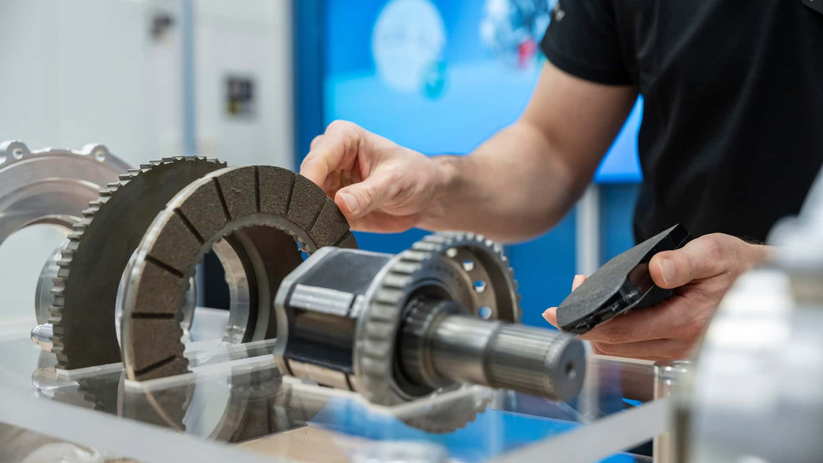 Με την πατέντα της Mercedes-Benz, όλη η σκόνη παραμένει εντός του ηλεκτροκινητήρα. Πώς λειτουργεί; Το δισκόφρενο είναι υδρόψυκτο και δεν γυρίζει, ενώ το τακάκι είναι κυκλικό και περιστρέφεται μαζί με το μοτέρ. Δεν υπάρχει η παραδοσιακή δαγκάνα όπως την γνωρίζουμε. Η πέδηση επιτυγχάνεται πιέζοντας το κυκλικό τακάκι πάνω στον ακίνητο δίσκο.