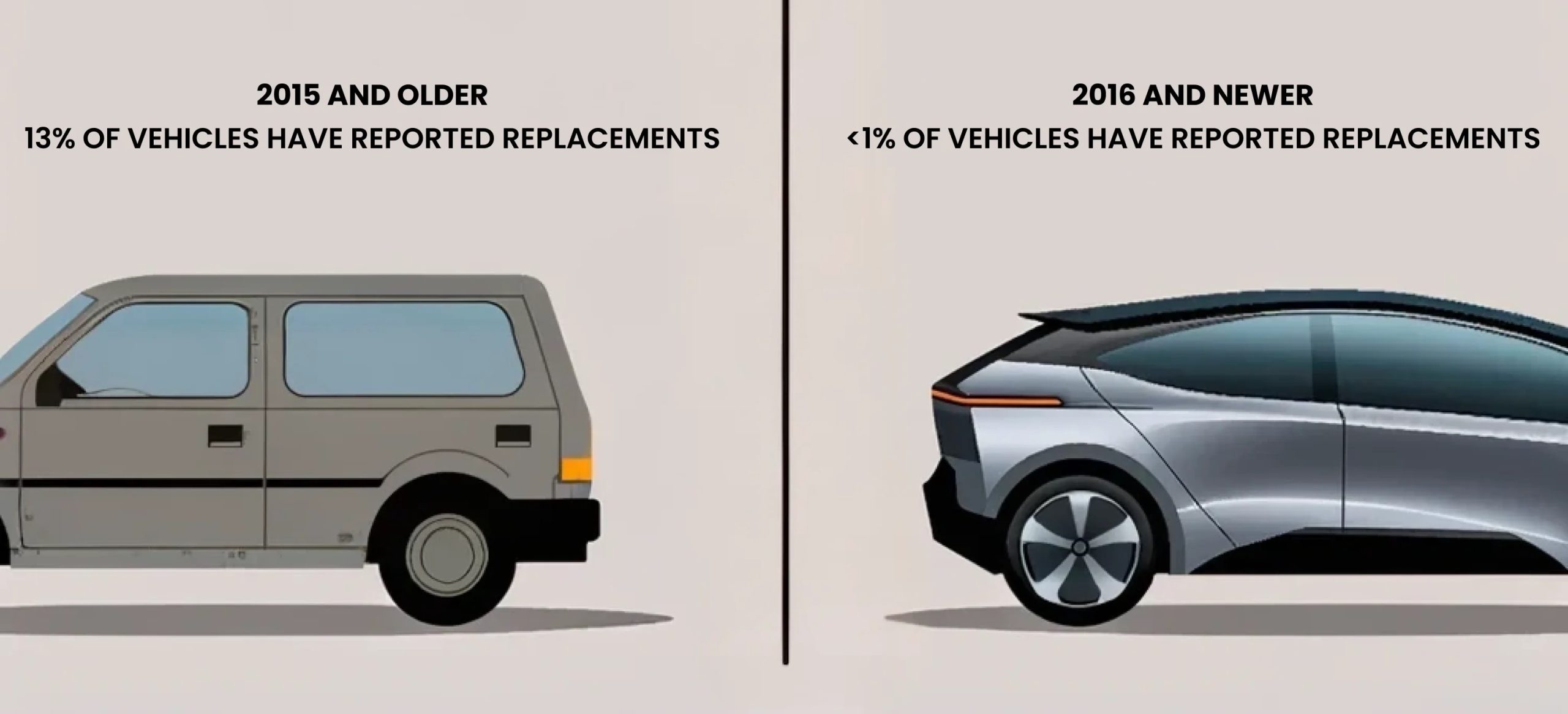 Έτσι, στα μοντέλα του 2011, το 30% των EV έχουν αλλάξει μπαταρία, ενώ στου 2012, το ποσοστό πέφτει στο 15,94%. Στα μοντέλα του 2013 μειώνεται στο 9,81%, στου 2014 στο 6,81% και σε αυτά του 2015 σχεδόν μηδενίζεται στο 3,90%. Από το 2016 κι έκτοτε, λιγότερα από το 1% των ηλεκτρικών οχημάτων έχουν αντικαταστήσει την μπαταρία του.