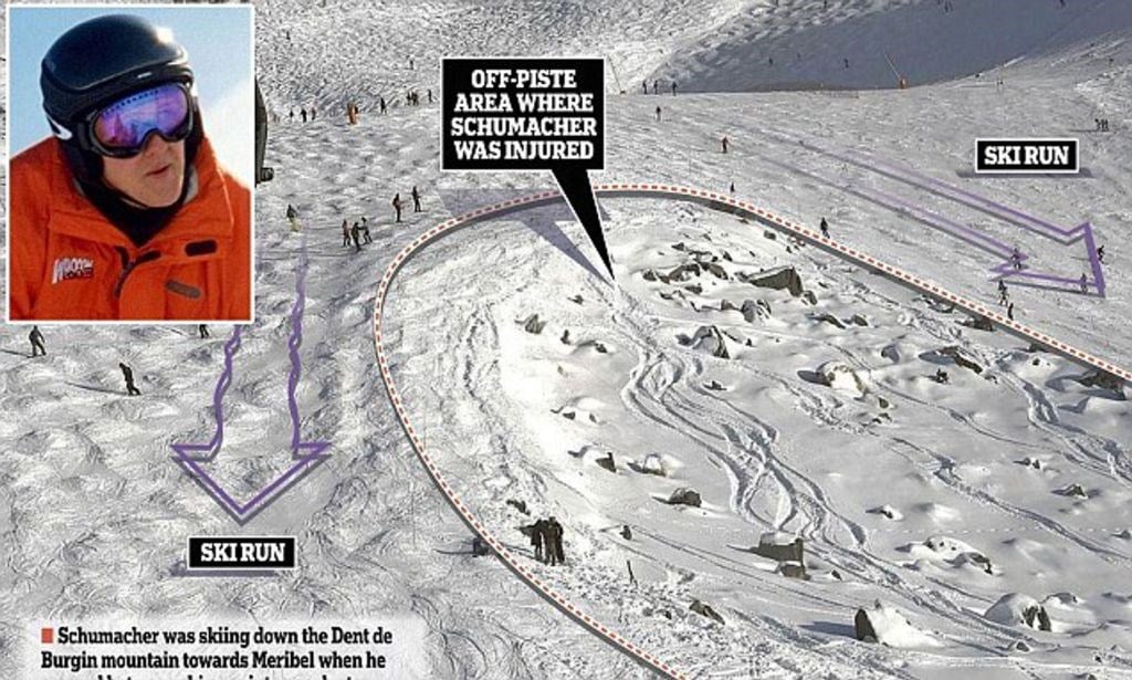 Ο Σουμάχερ βγήκε εκτός πίστας, εκεί όπου υπάρχει φρέσκο χιόνι και η διαδρομή οριοθετείται από απλά μπαστούνια, με ταχύτητα που ορίζεται ως «κατάλληλη» από τους Γάλλους ερευνητές.