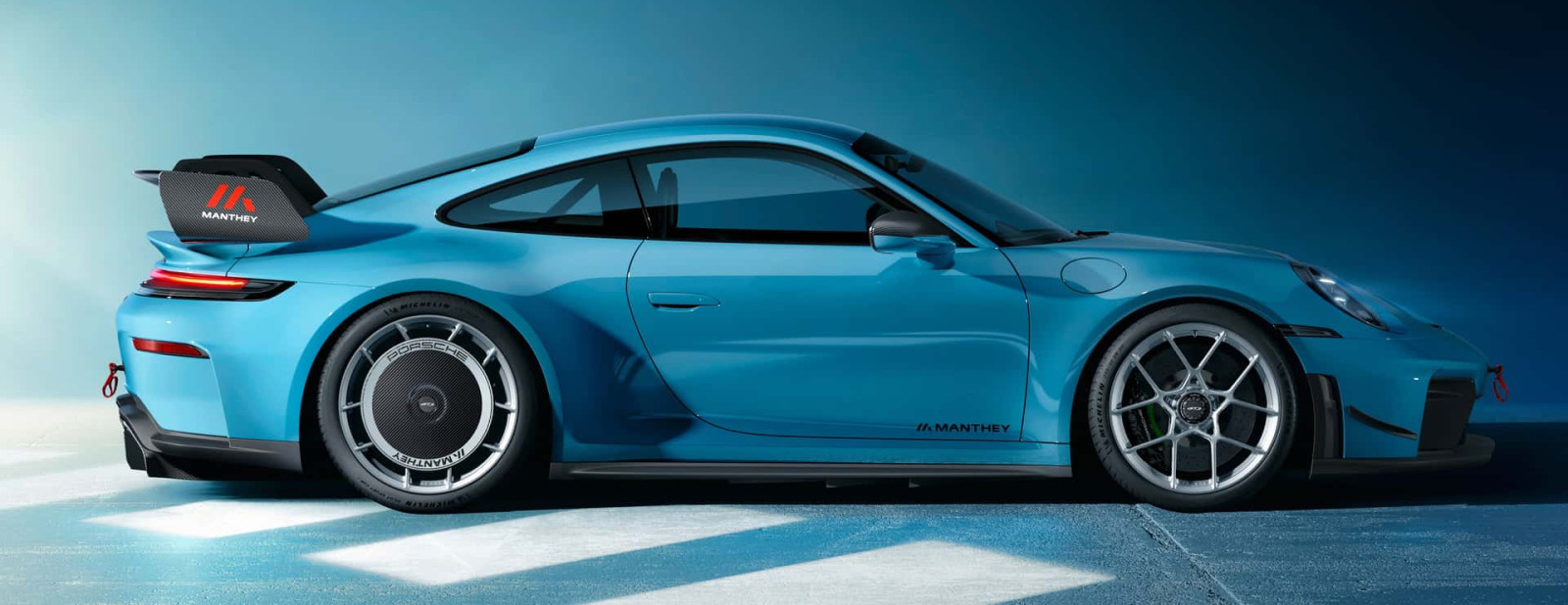 Η Manthey προσθέτει μεταλλικά σωληνάκια φρένων και coilover ανάρτηση. Η τεράστια πίσω αεροτομή είναι φαρδύτερη και πιο περίτεχνη, ενώ ο διαχύτης έχει μεγαλώσει.