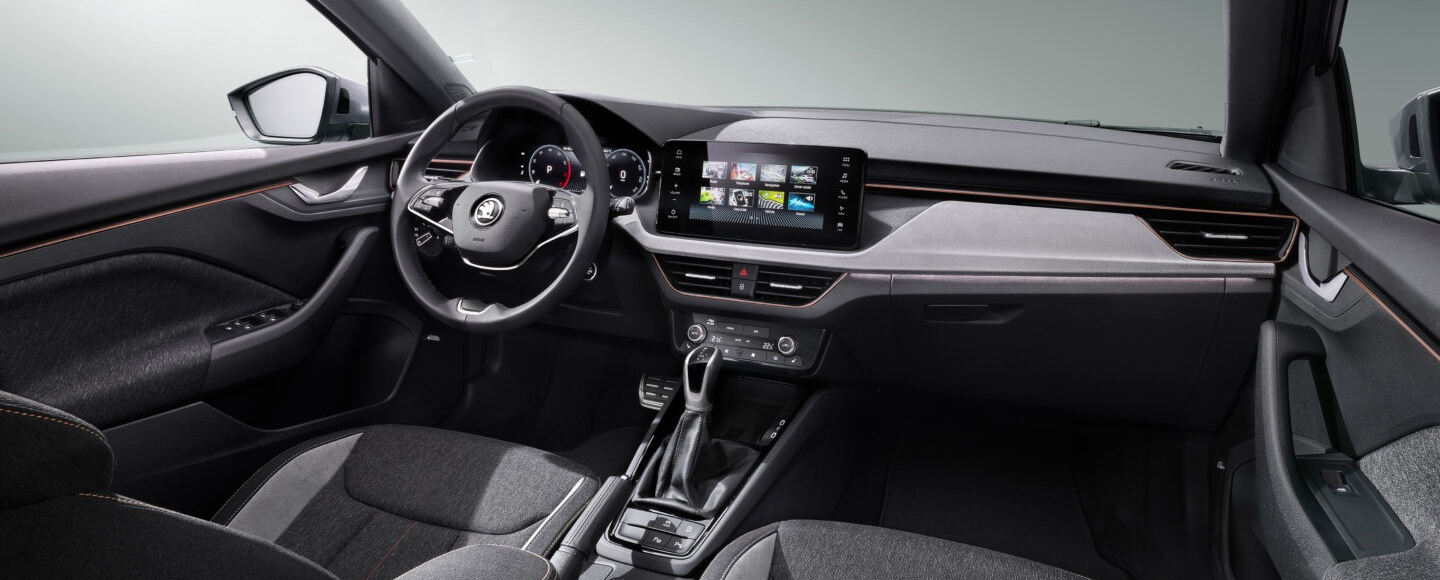 Στο εσωτερικό, τα αναβαθμισμένα Scala και Kamiq διαθέτουν ψηφιακή οθόνη 8” στάνταρ σε όλες τις εκδόσεις. Μια οθόνη αφής 9” αποτελεί μέρος του πακέτου πλοήγησης. Το προαιρετικό, παραμετροποιήσιμο Virtual Cockpit διαθέτει οθόνη 10”.