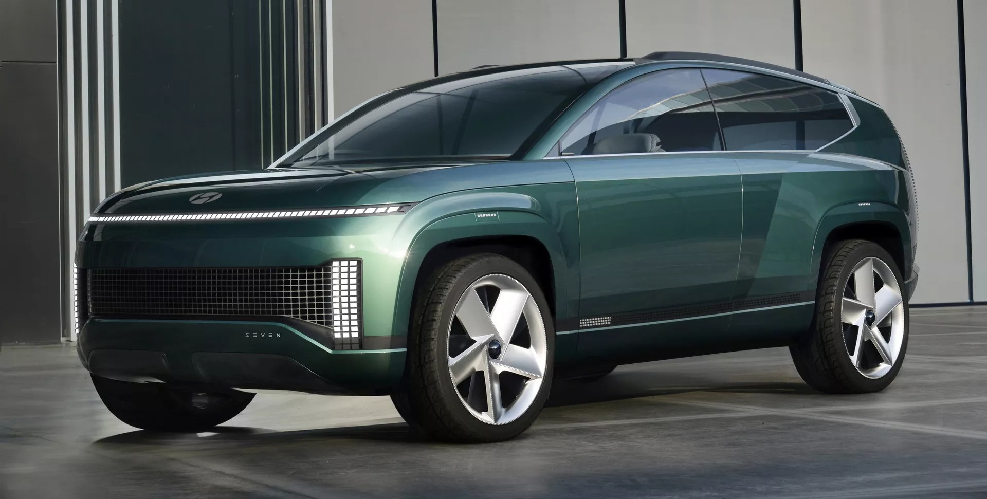 Όπως αποτυπώνεται και στην teaser φωτογραφία, το Hyundai Ioniq 9 είναι πολύ πιθανό να υιοθετήσει στοιχεία από το πρωτότυπο SEVEN Concept που χαρακτηρίζεται από την ενιαία φωτεινή μπάρα LED που εκτείνεται κατά μήκος της μάσκας με τα χαρακτηριστικά «Parametric Pixels» της φίρμας. Αλλά και τα επίσης κάθετα LED που είναι τοποθετημένα στον προφυλαχτήρα.