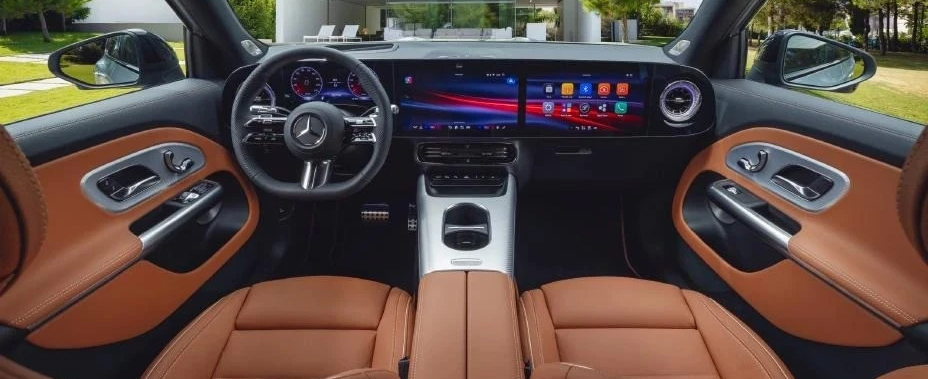 Στο εσωτερικό, η νέα Mercedes-Benz GLB είναι όσο σύγχρονη και πολυτελής περιμένεις από ένα μοντέλο της φίρμας. Πίσω από το τιμόνι, ο οδηγός έχει στη διάθεσή του έναν ψηφιακό πίνακα οργάνων 10,25” και στο κέντρο συναντούμε την 14άρα οθόνη για το infotainment, με ενσωματωμένη τεχνητή νοημοσύνη από Google και Microsoft και υποστήριξη φωνητικού βοηθού που βασίζεται στο ChatGPT. Προσφέροντας ακόμα πιο προηγμένες λειτουργίες. Προαιρετικά, ο ιδιοκτήτης μπορεί να επιλέξει το MBUX Superscreen που περιλαμβάνει μια επιπλέον οθόνη 14” στην πλευρά του συνοδηγού.