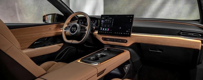 Όσον αφορά τις διαστάσεις, το μήκος φτάνει τα 4,92 m το πλάτος τα 1,89 m, το ύψος τα 1,49 m και το μεταξόνιο τα 2,89 m. Στο εσωτερικό, η Mazda διατηρεί τη γνωστή, μίνιμαλ εικόνα των μοντέλων της με ψηφιακό πίνακα οργάνων 10,2” και κεντρική οθόνη με διαγώνιο στις 14,6 ίντσες.