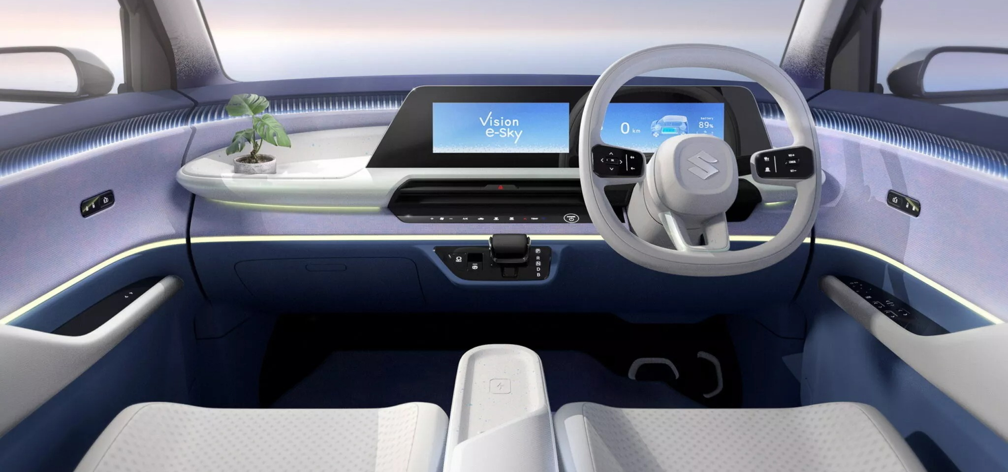 Σε περίοπτη θέση στο περίπτερο της ιαπωνικής μάρκας θα βρίσκεται το πρωτότυπο Vision e-Sky, ένα ηλεκτρικό kei car που προορίζεται για καθημερινές μετακινήσεις και σύντομες αποδράσεις το Σαββατοκύριακο. Το νέο μοντέλο ακολουθεί τη φιλοσοφία «Unique, Smart, Positive», προσφέροντας μία χαρούμενη και φιλική διάθεση στους οδηγούς, και φέρει το ανασχεδιασμένο λογότυπο της Suzuki, με επίπεδο σχέδιο και ματ φινίρισμα αλουμινίου.