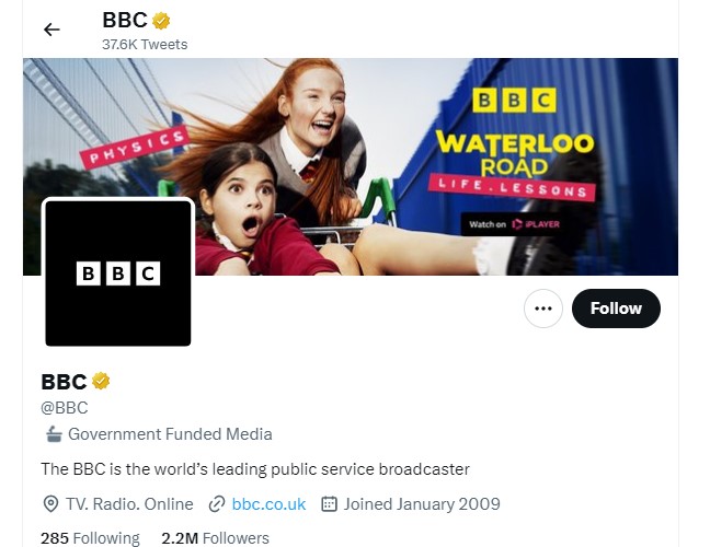 O δημόσιος ραδιοτηλεοπτικός φορέας της Βρετανίας έχει ήδη επικοινωνήσει με την Twitter ζητώντας να διευθετηθεί το ζήτημα όσο το δυνατόν πιο σύντομα. «Το BBC είναι και ήταν πάντα ανεξάρτητο. Χρηματοδοτούμαστε από τον βρετανικό λαό από το τέλος αδειοδότησης», σημείωσε.