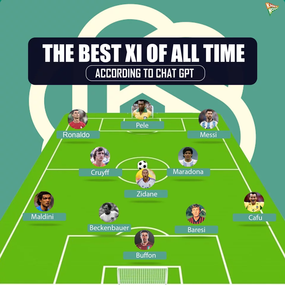 Το ChatGPT, μία εφαρμογή τεχνητής νοημοσύνης, η οποία κυκλοφόρησε από την OpenAI τον Νοέμβριο 2022, έχει κάνει γνωστή την ισχυρότερη ποδοσφαιρική ενδεκάδα όλων των εποχών.