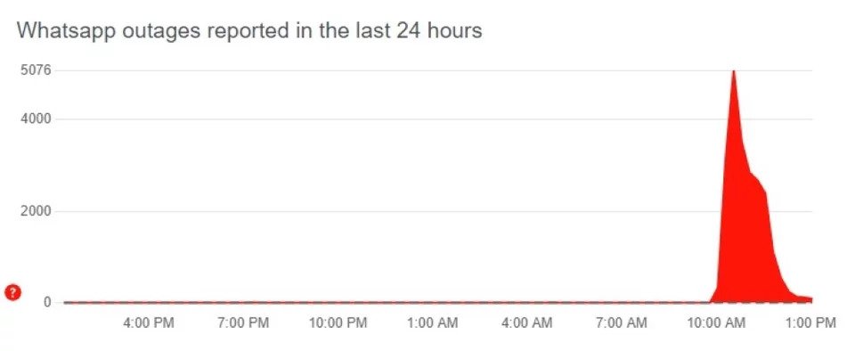 Το Downdetector, ένας ιστότοπος που παρακολουθεί διαδικτυακές διακοπές σε όλο τον κόσμο, έδειξε μια απότομη αύξηση στον αριθμό των χρηστών που ανέφεραν τη διακοπή λειτουργίας του WhatsApp: