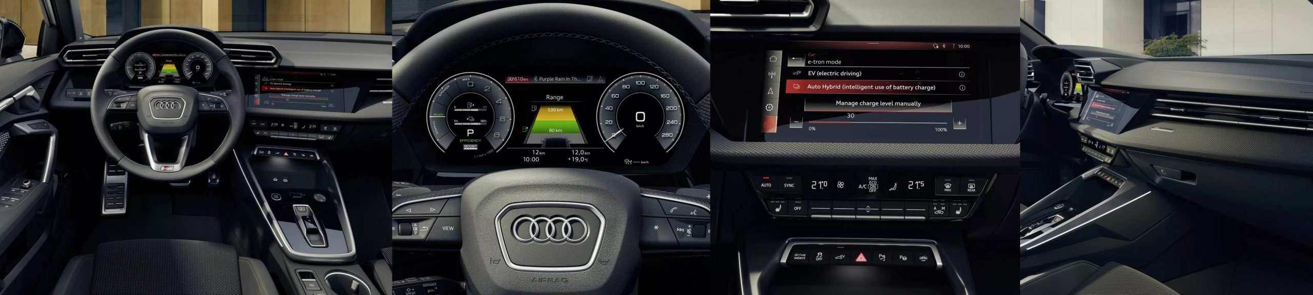 Το εξηλεκτρισμένο Audi A3 εκκινεί πάντα ηλεκτρικά, ενώ τα χειριστήρια των ταχυτήτων μπορούν να χρησιμοποιηθούν για τη ρύθμιση του επιπέδου της αναγεννητικής πέδησης.